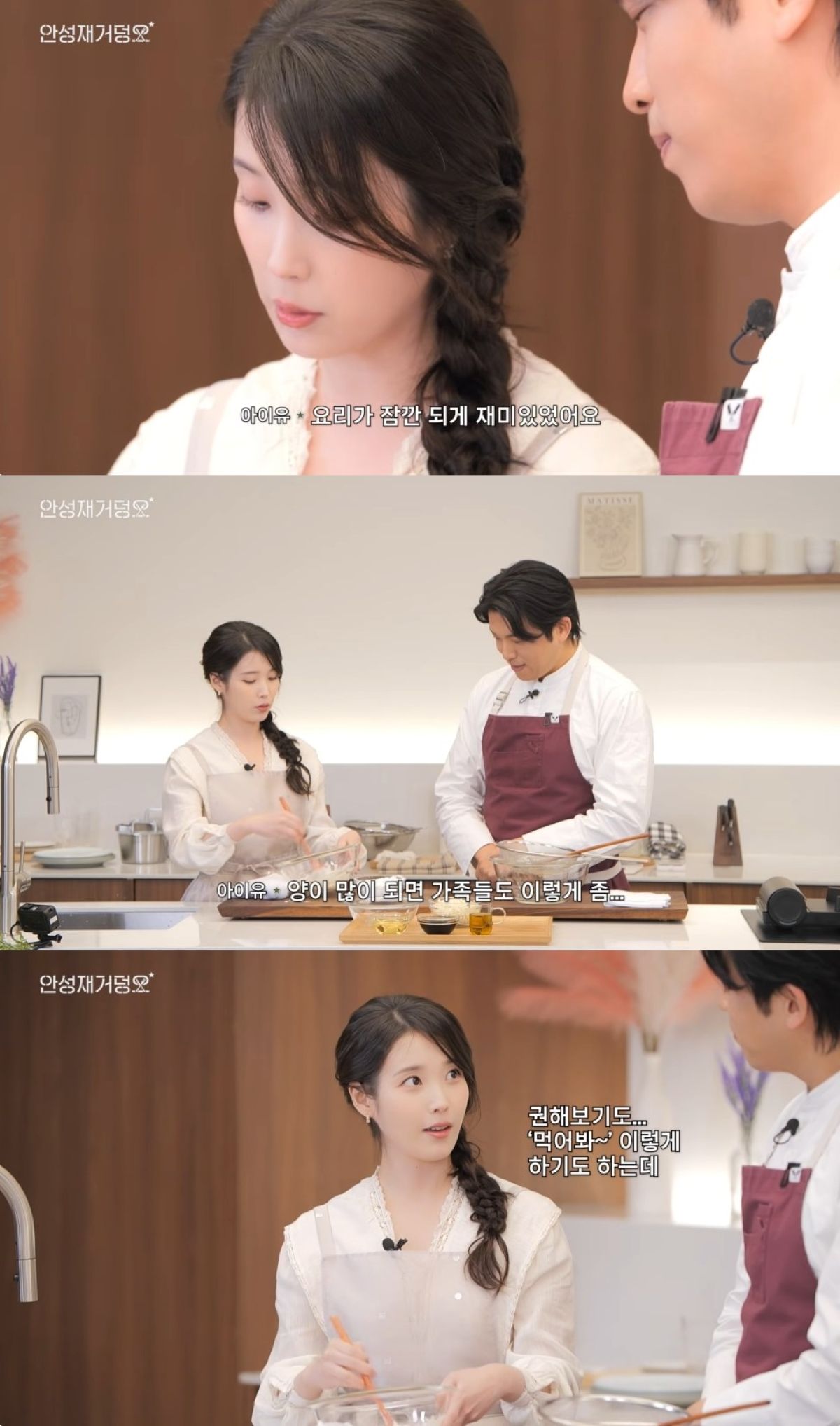 IU confessed, “I used to make stews and braised chicken at home. When I made a lot, I’d offer it to my family, but they wouldn’t eat it,” eliciting laughter.