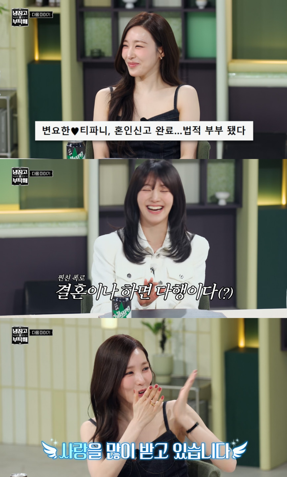 As a guest, Tiffany Young was congratulated on her marriage to Byun Yo-han. The couple legally became husband and wife after registering their marriage in February.