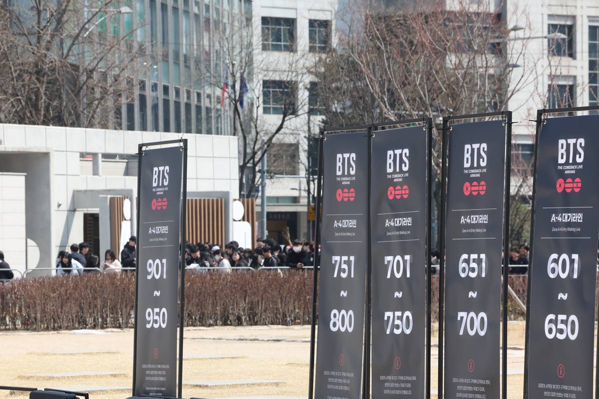 This concert, lasting about an hour, is free and offers both standing and reserved seating. Although the performance starts at 8 p.m., thousands had already gathered in the Gwanghwamun Square area ahead of BTS’s first full group comeback in three years and nine months.