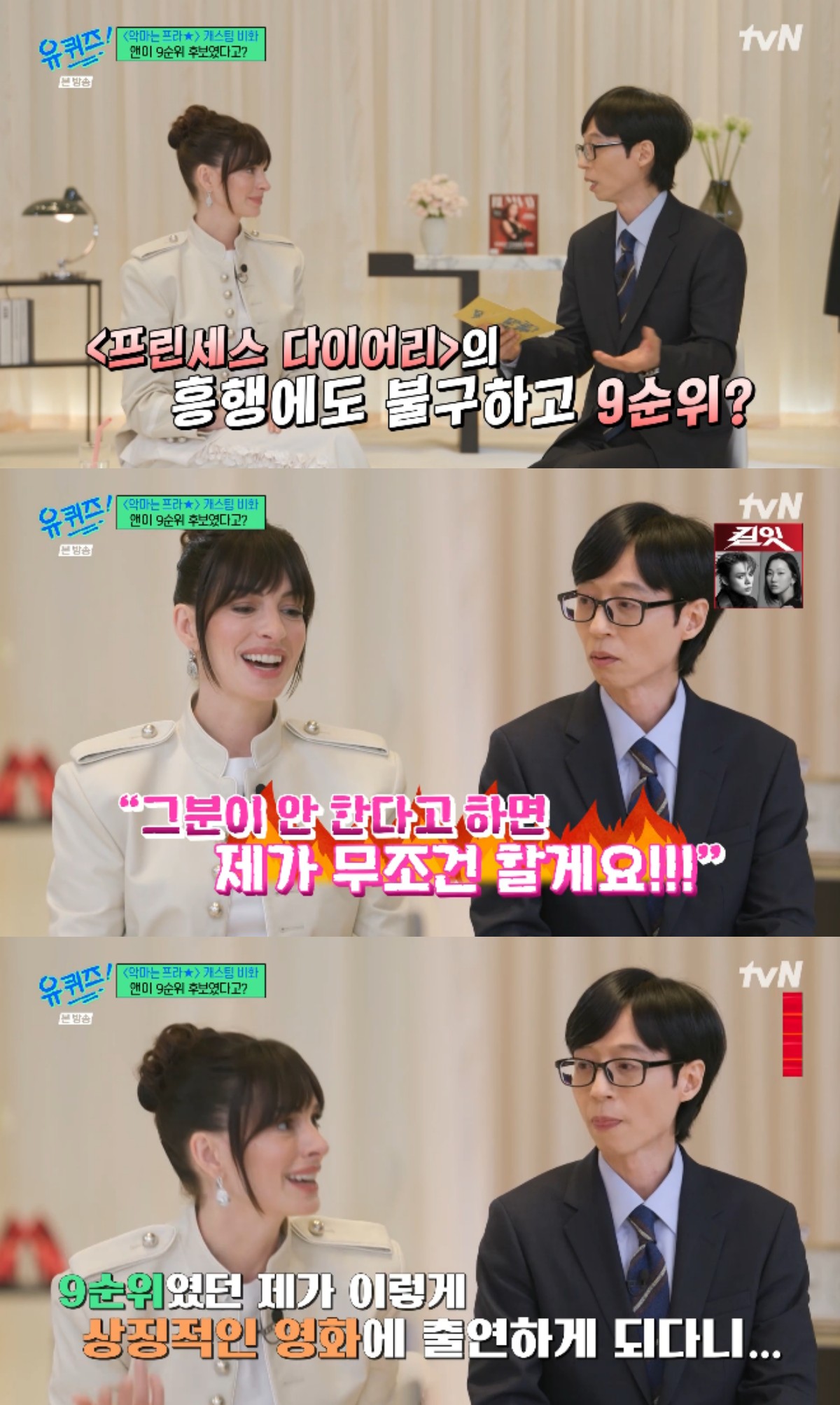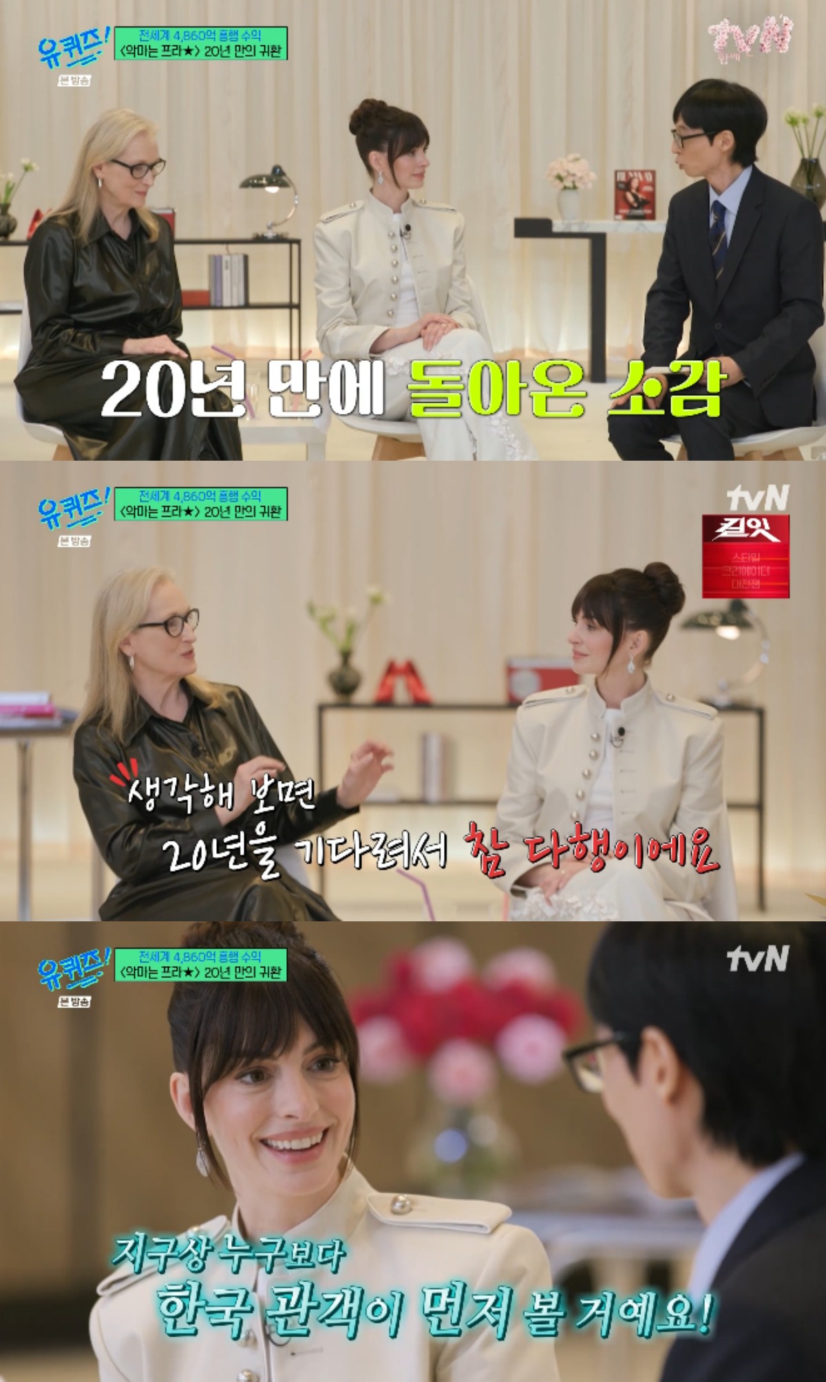 In the April 15 episode of tvN’s variety show ‘You Quiz on the Block,’ Hollywood actors Meryl Streep and Anne Hathaway appeared, marking their return after 20 years, to discuss ‘The Devil Wears Prada’ and the prospect of a sequel.