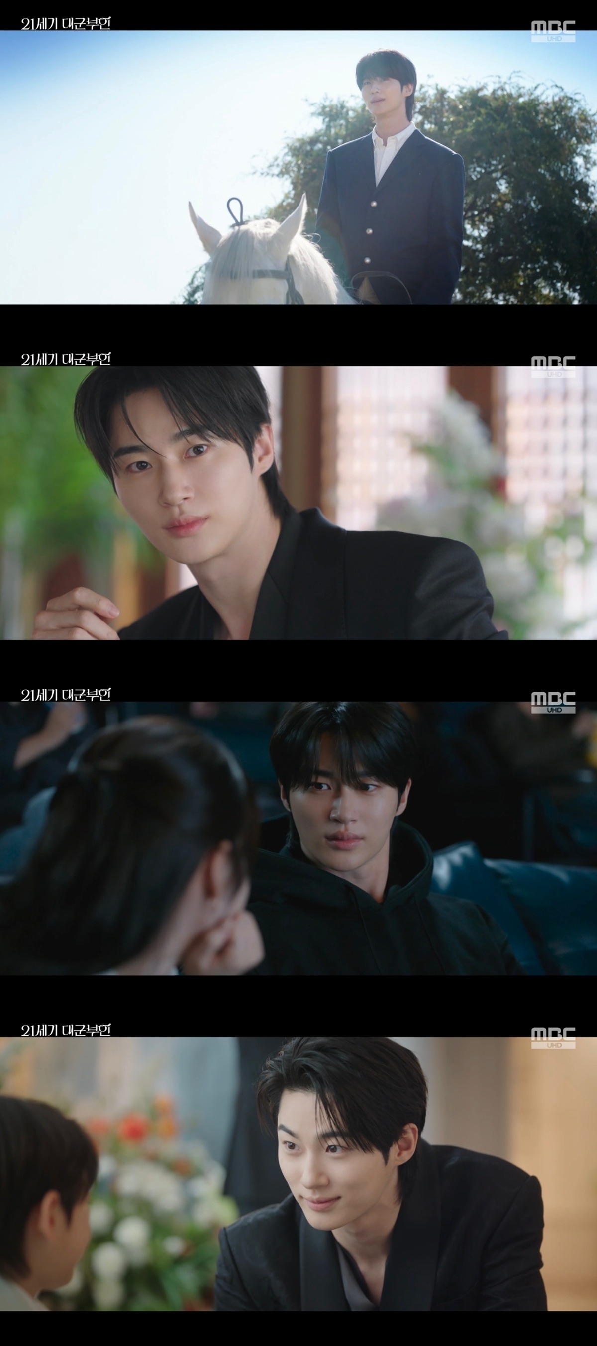 In the MBC Friday-Saturday drama ’21st Century Grand Prince,’ which aired on the 11th, Grand Prince Ian (played by Byun Woo-seok) was met with bold flirtation from Seong Hee-joo (IU). Previously, Seong Hee-joo had proposed marriage, but Grand Prince Ian had firmly rejected it. Undeterred, Seong Hee-joo persistently pursued him in various locations, including an equestrian center, a traditional Korean restaurant, the road, and a cinema, repeatedly saying, “I wanted to see you.”