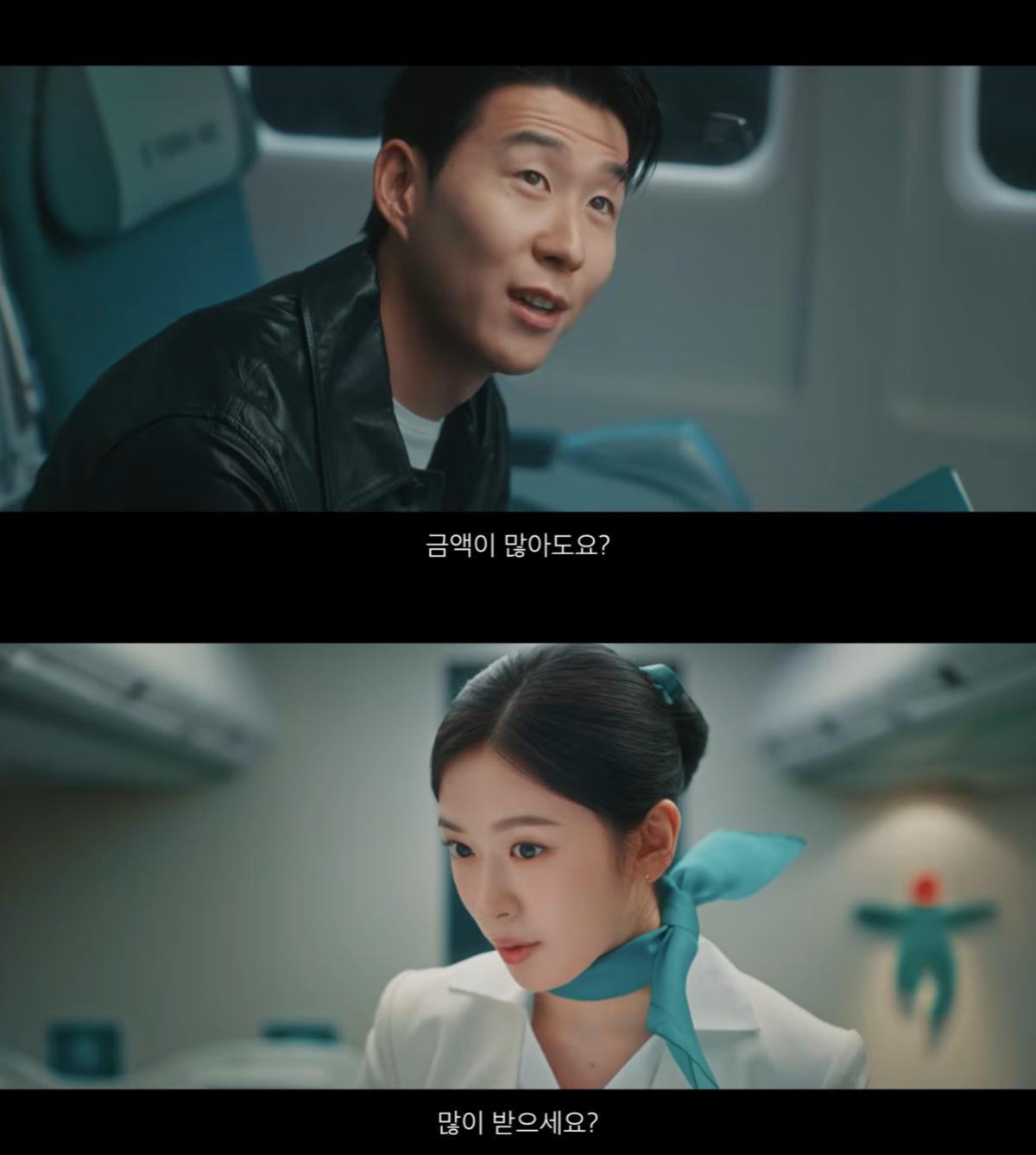 Ahn Yu-jin, in her informational role, answered Son Heung-min’s questions about financial products. Son humorously asked, “Even if the amount is large?” Ahn replied, “Do you earn a lot?” and Son, laughing, answered, “Yes,” which drew attention.