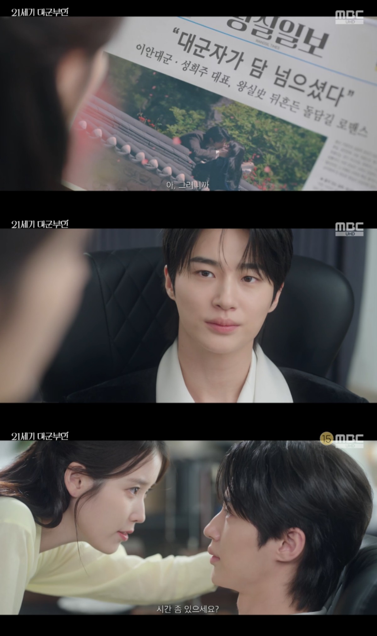 Presenting the news photo to Lee An-daegun, Seong Hee-joo complained, “I told you we should do it again! They’ve captured a childish peck.”